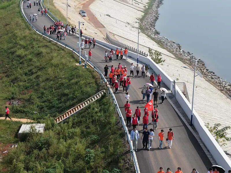 頒獎結束后,公益徒步護河行動正式拉開帷幕。此次徒步路線從湘江馬家河出發,終點為湘潭芙蓉大橋,全程約4.2公里,沿途設置5個特色打卡點,依次為馬家河、建設村、大唐發電取水口、黃獺港排漬口、湘潭芙蓉大橋橋下,每個打卡點均布置了宣傳展板、資料、打卡背景框等。志愿者們沿湘江河畔前行,通過實地巡河、打卡宣傳等形式,在沉浸式感受湘江岸線生態之美的同時,還能學習水利工程與水資源保護知識,傳播河流保護理念,共同守護母親河的生態環境。