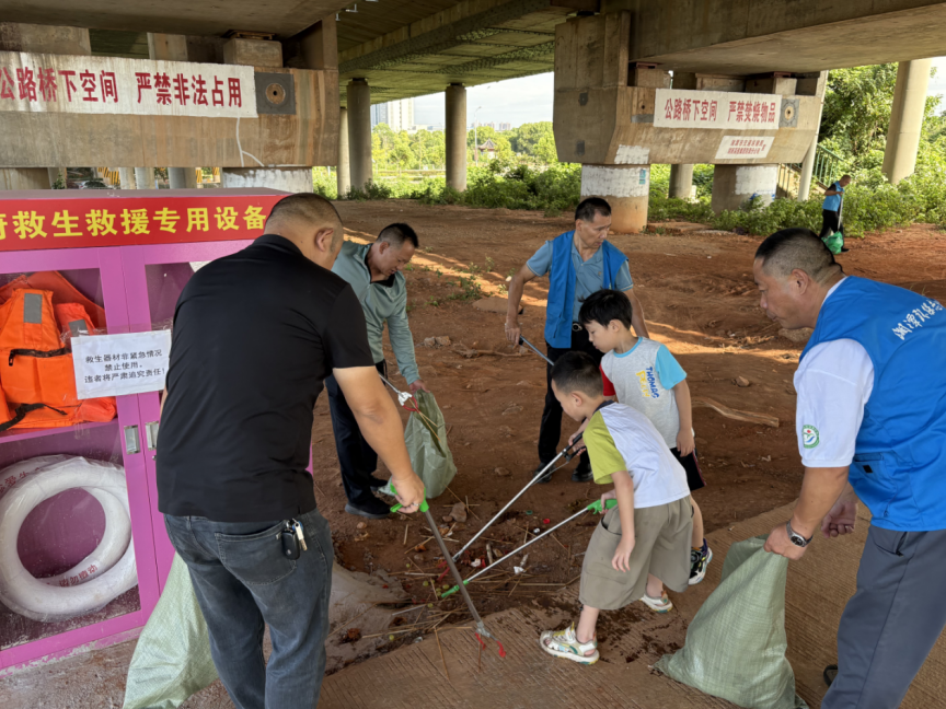 8月8日上午,在湘江滬昆高速公路橋下河灘,一群身著“藍馬甲”標志服裝的志愿者身影格外醒目。為積極響應“美麗中國,志愿有我”號召,深入踐行“綠色衛士下三湘”行動,綠色衛士湘潭大隊聯合湘潭生態環境保護協會民間河長經開區中隊,開展了一場“汗”衛母親河的凈灘專項行動。