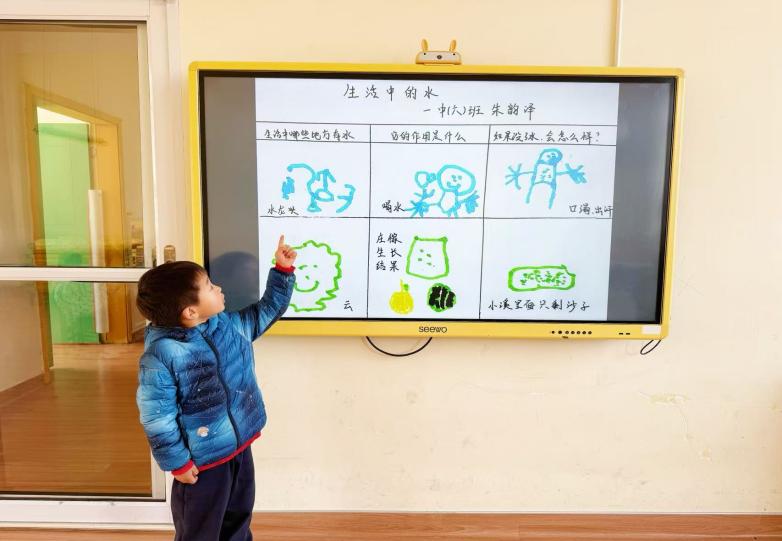 活動前期,孩子們實地觀察和記錄幼兒園各個位置的用水情況,認真觀察水龍頭的水流、洗手池的用水量等,用自己的方式記錄下觀察結果。家長和孩子們圍繞“水的作用”“沒有水會怎么樣”等問題進行分享討論,充分理解水在日常生活、動植物生長以及整個生態系統中的重要意義。在教學活動《小雨滴旅行記》中,孩子們了解了“水—水蒸氣—水”的奇妙變化過程,進一步激發了他們探索水世界的欲望。
