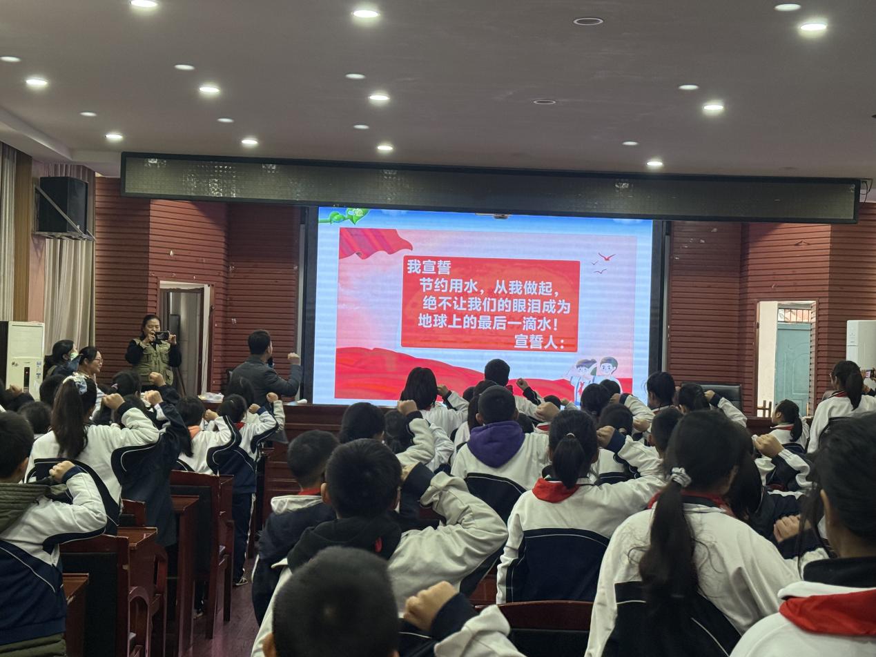 活動結(jié)束之際,在綠色衛(wèi)士們的引領(lǐng)下,校領(lǐng)導與各班級同學一同受邀參與宣誓。大家紛紛高舉右手,神情莊重且堅定,齊聲許下承諾:“節(jié)約用水,從我做起,絕不讓我們的眼淚成為地球上的最后一滴水!”宣誓聲擲地有聲,在活動現(xiàn)場久久回蕩,也深深銘刻在每個人的心中。
