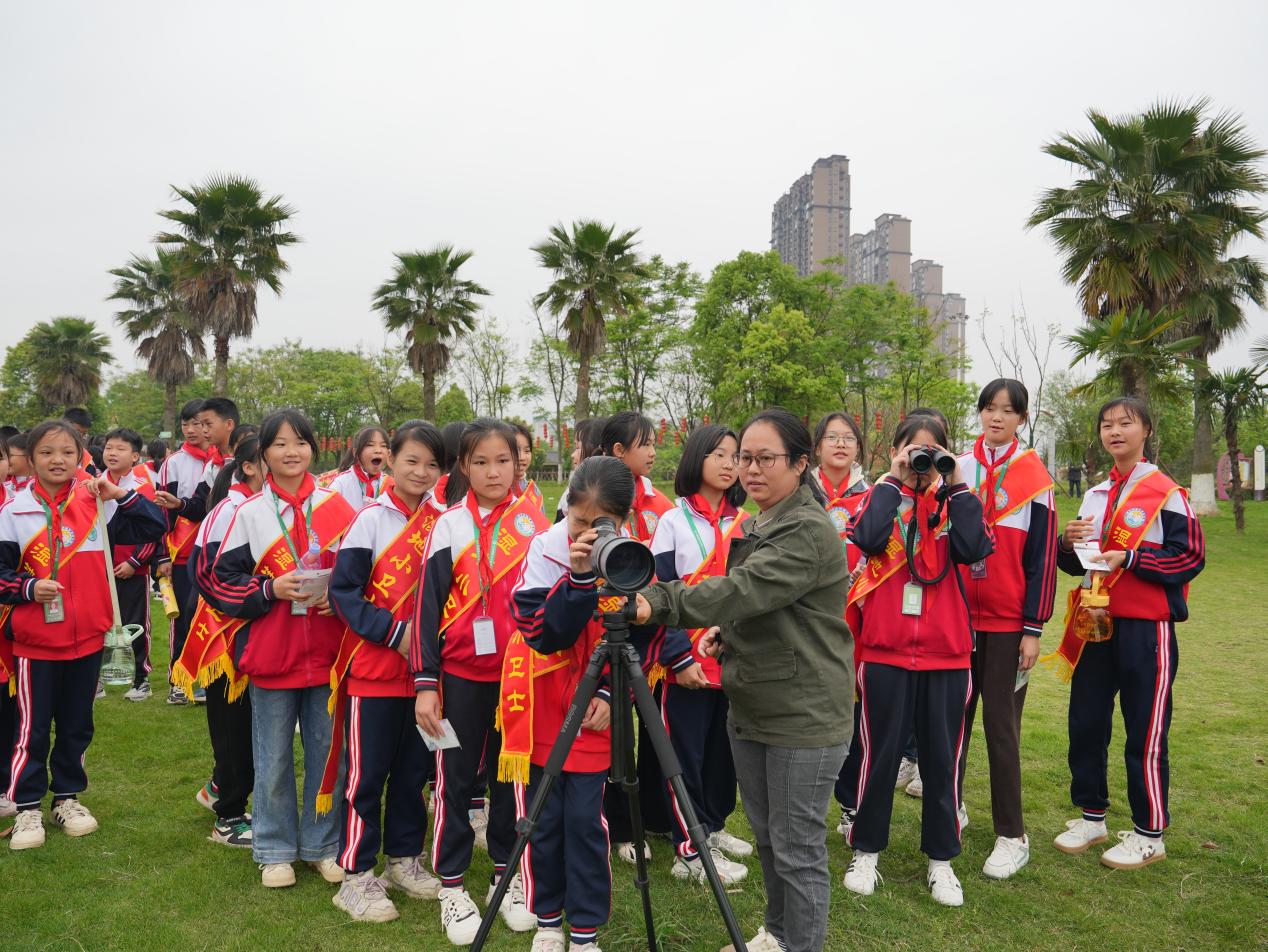 最吸睛還屬觀鳥臺,大家都有秩序的排著隊,通過觀鳥鏡和望遠(yuǎn)鏡觀察鳥類的形態(tài)和特征,拓展同學(xué)們認(rèn)識鳥類的視野,讓他們愛上鳥類,一起向自然。