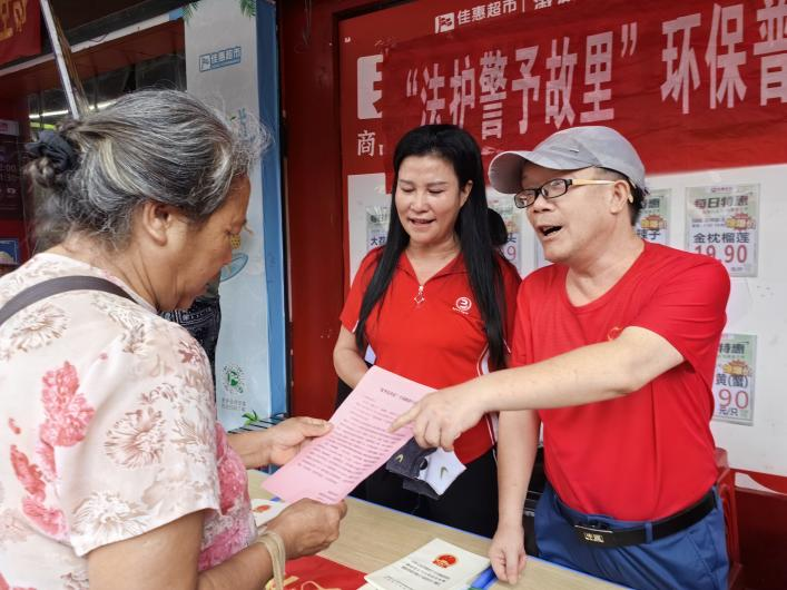 活動當天,志愿者們通過擺攤設點、走街串巷的方式,向過往行人發(fā)放環(huán)保宣傳手冊與宣傳單。宣傳手冊涵蓋了各類環(huán)保知識以及與日常生活息息相關的環(huán)保條例,如《湖南省大氣污染防治條例》等。志愿者們還與群眾一起閱讀環(huán)保條例,用通俗易懂的語言講解其中的重點內(nèi)容,耐心解答群眾的疑問。