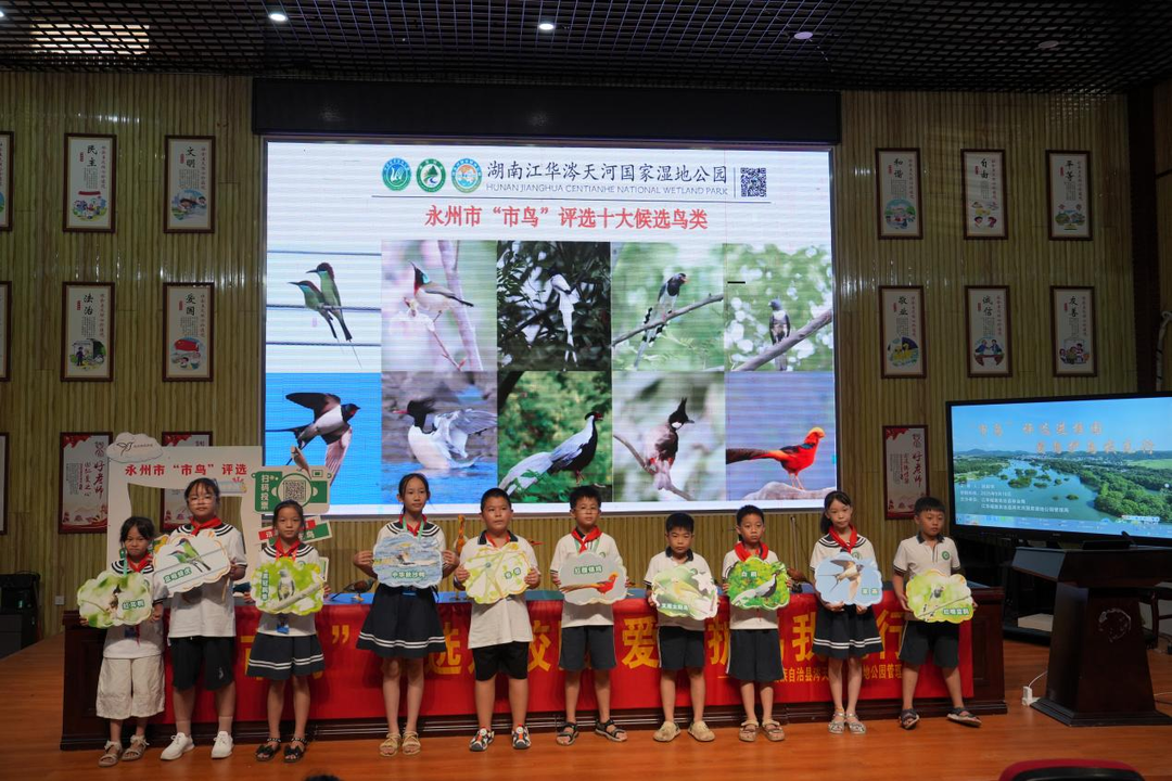 最讓學生們興奮的,莫過于專業鳥類講師帶來的 “鳥類科普環節”。講師借助精美的鳥類圖片以及逼真的鳥類模型,向學生們詳細介紹了涔天河國家濕地公園內常見的鳥類種類,特別是10種候選市鳥的形態特征、生活習性及生態價值,每一個知識點都充滿趣味。