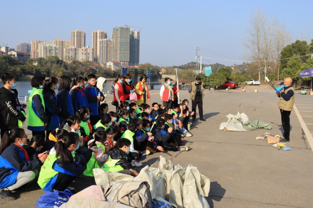“廢紙、金屬、玻璃這些屬于可回收垃圾,我們要把它們扔進藍色的垃圾桶里,電池、廢舊電子產品、廢棄藥品屬于有害垃圾,要扔到紅色垃圾桶里……”零陵大隊志愿者們繪聲繪色的對同學進行垃圾分類的知識講解。為豐富活動的趣味性,志愿者們將同學們分成四個組,每組25人,大家一起在瀟水河畔撿拾垃圾,并稱了比重,對撿的最多的組進行了禮物獎勵,讓同學們在比賽中了解了垃圾分類知識,學會垃圾分類的方法。