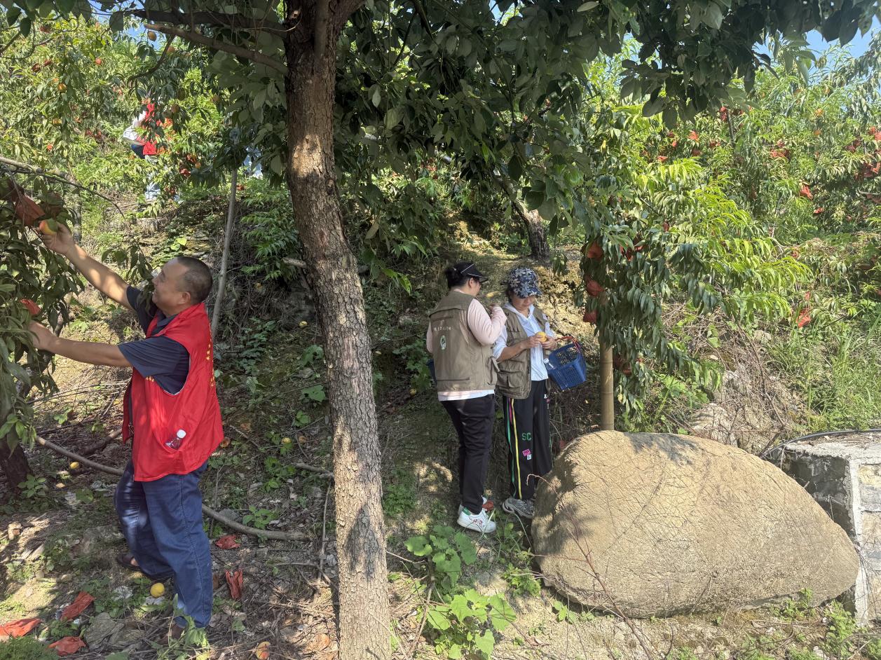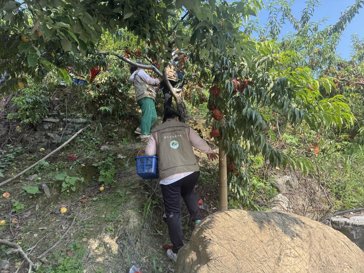 生態環保志愿者深入果園,一邊采摘,一邊與果農交流,收集果農在種植過程中遭遇的問題,盡己所學、所能幫助解決困難,并分享相關環保知識。
