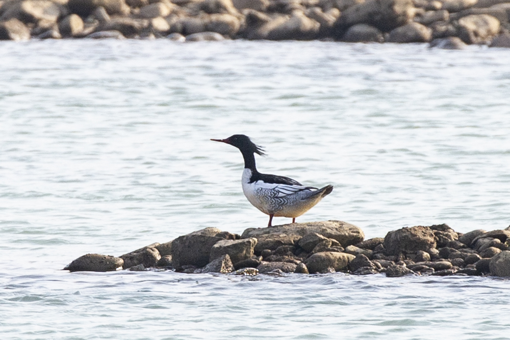 中華秋沙鴨距今已在地球上生存了1000多萬年,是國家一級重點保護動物,全球不超過5000只,數量極其稀少,是國際瀕危物種,被譽為“鳥中大熊貓”。中華秋沙鴨是一種對環境因子極其敏感的鳥類,對生存環境極其挑剔,又被稱作“生態試紙”。工作人員從去年11月中旬至今年3月底開展持續監測調查,初步確定中華秋沙鴨在此越冬。中華秋沙鴨都是以家族方式活動,此次共監測到10只中華秋沙鴨,6雄4雌。