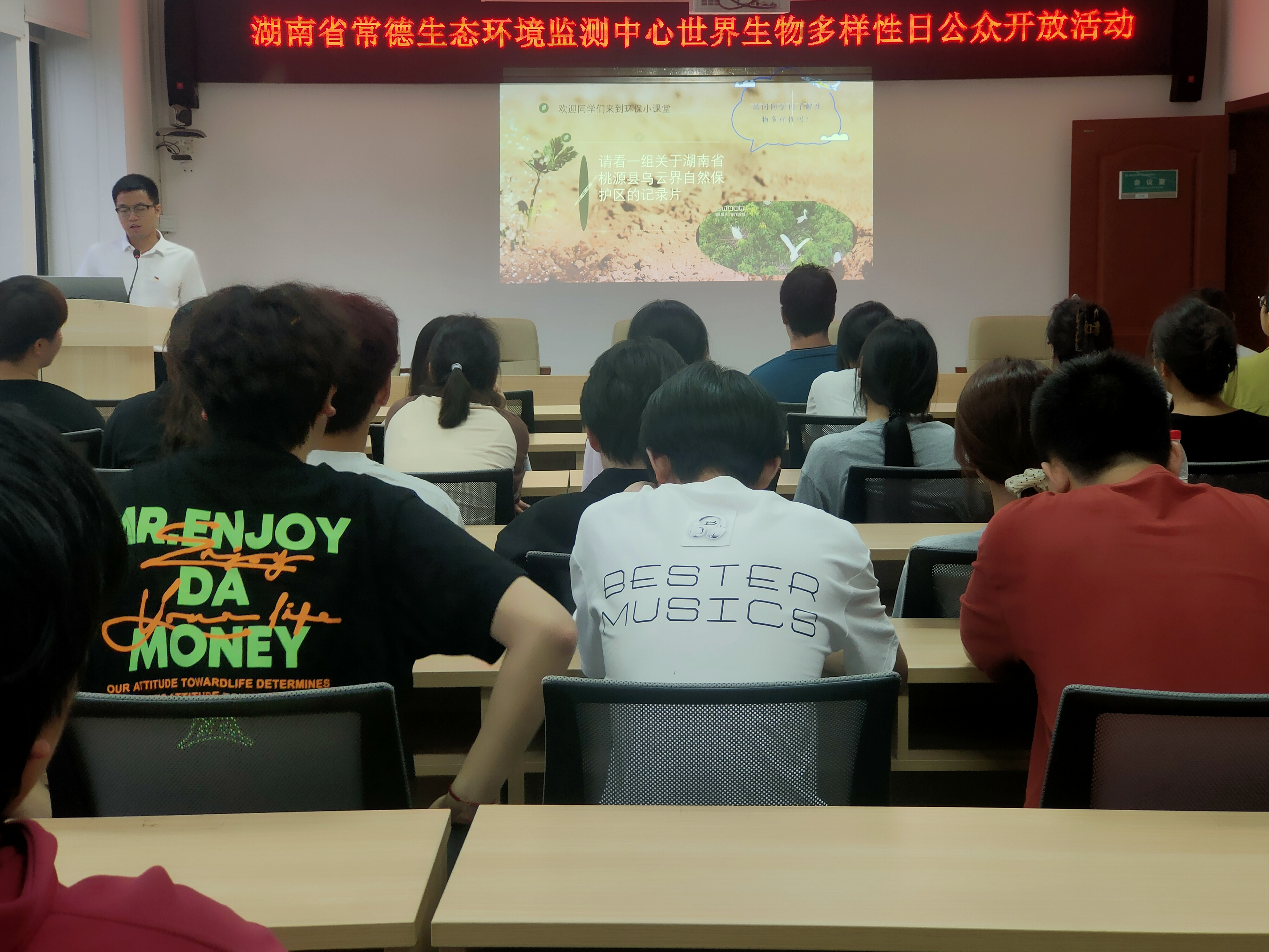 離開實驗室,師生們來到了多媒體宣講中心,這里成為了生物多樣性知識傳播的新陣地。宣講團成員用專業的語言滿懷熱情地講述了生物多樣性日的由來,從最初的國際倡議到如今全球共同關注的生態議題,每一個歷史節點都凝聚著人類對自然生態的敬畏與保護之心。隨后,宣講團成員向師生們發出了積極學習和傳播生物多樣性知識、保護野生動植物、踐行對生物多樣性友好型的旅游方式、自覺遵守生物多樣性相關法律法規等一系列充滿責任感與使命感的倡議。
