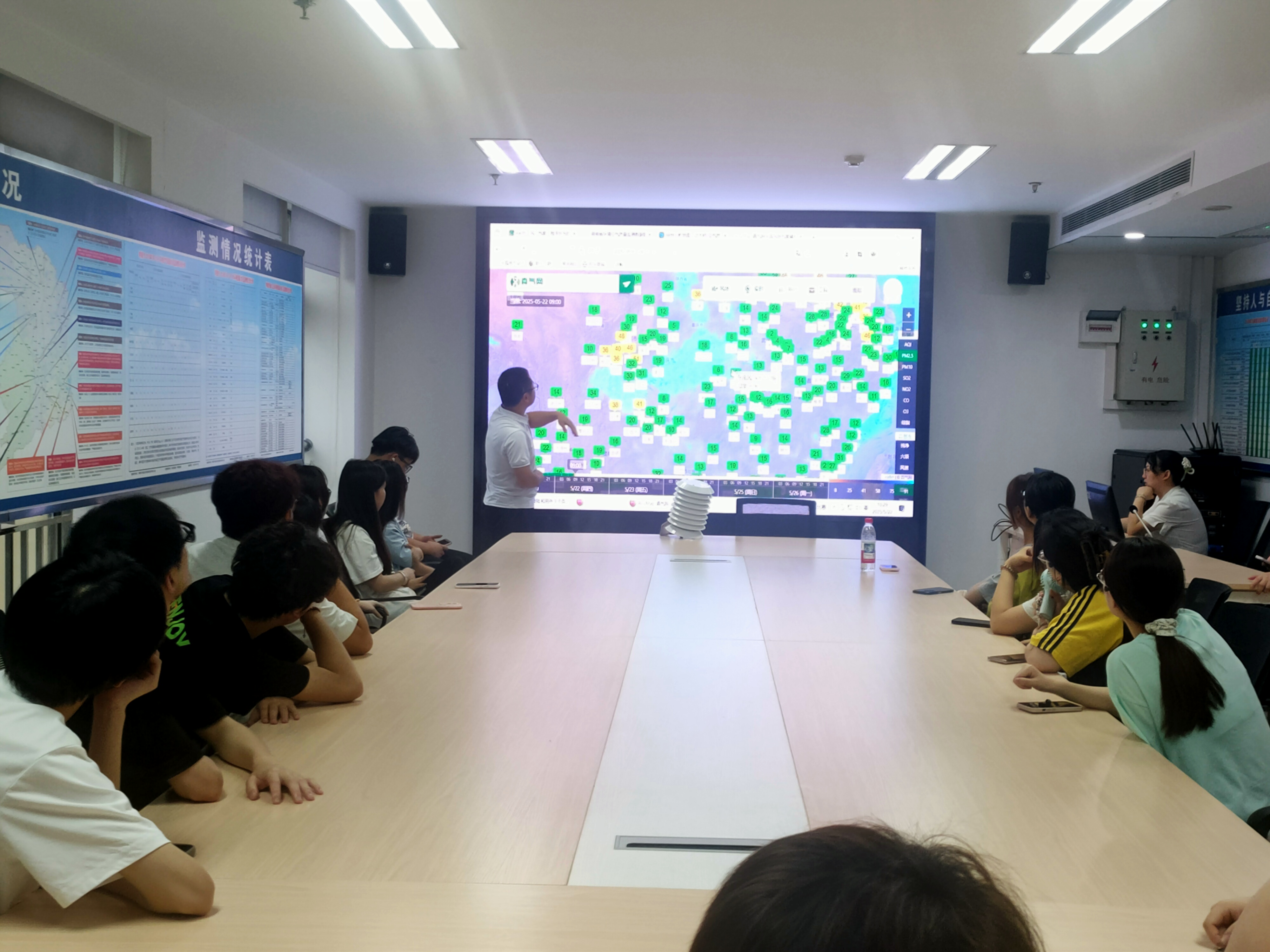 活動的最后一站,師生們走進了環境空氣質量會商室。在這里,宣講團成員為師生們揭開了空氣質量預警預報系統的神秘面紗。他們詳細介紹了AQI空氣質量指數的等級劃分,從空氣質量優到嚴重污染,每一個等級都對應著不同的健康影響和防護建議。通過生動的案例和直觀的數據,讓師生們深刻認識到空氣質量與生物多樣性之間的緊密聯系,明白了保護空氣質量對于維護生態平衡的重要意義。