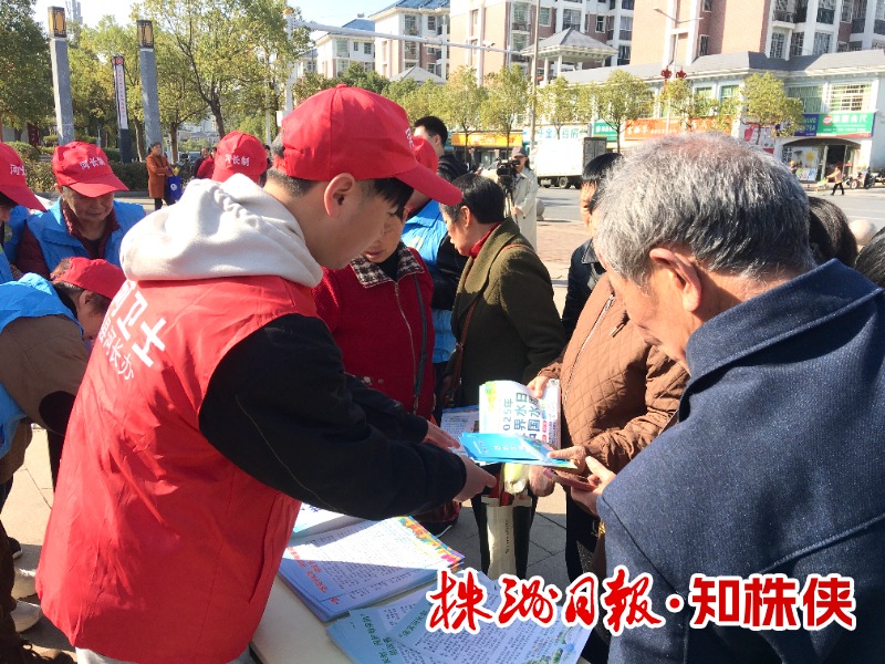 圖2、向路人發(fā)送宣傳資料。周新文 供圖