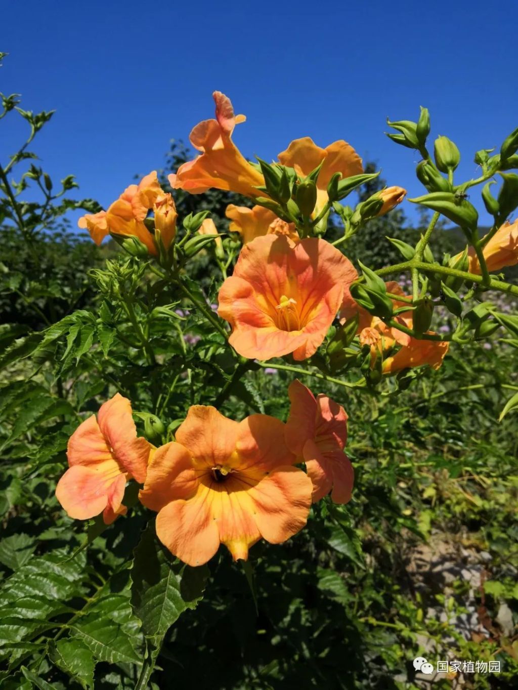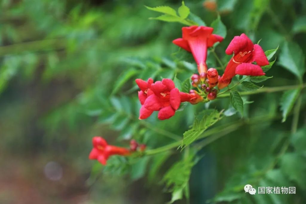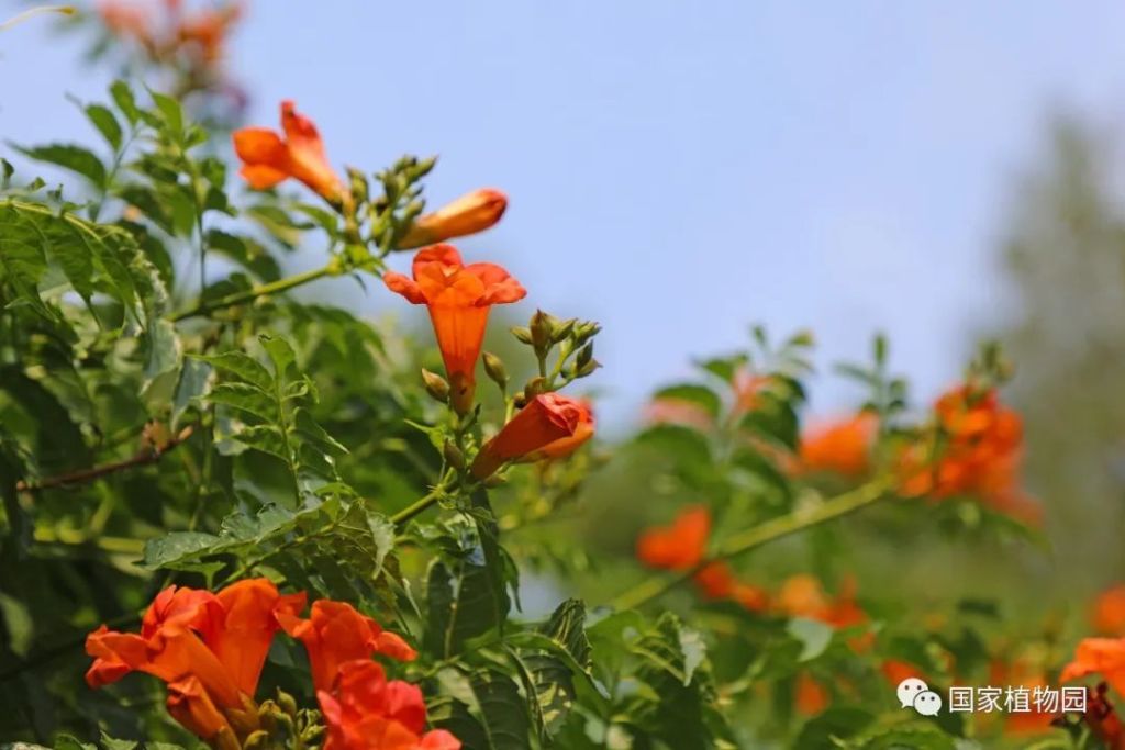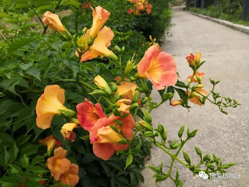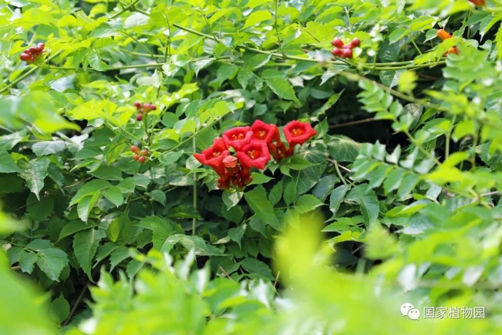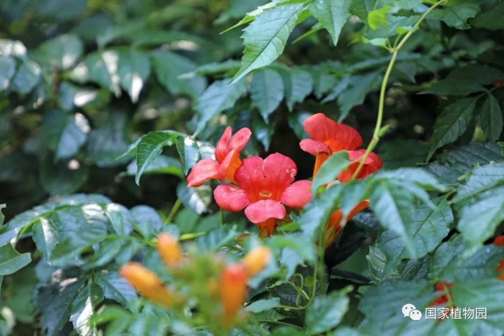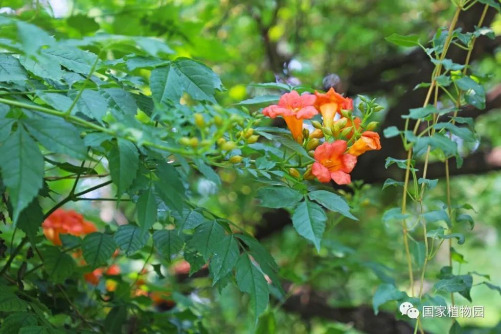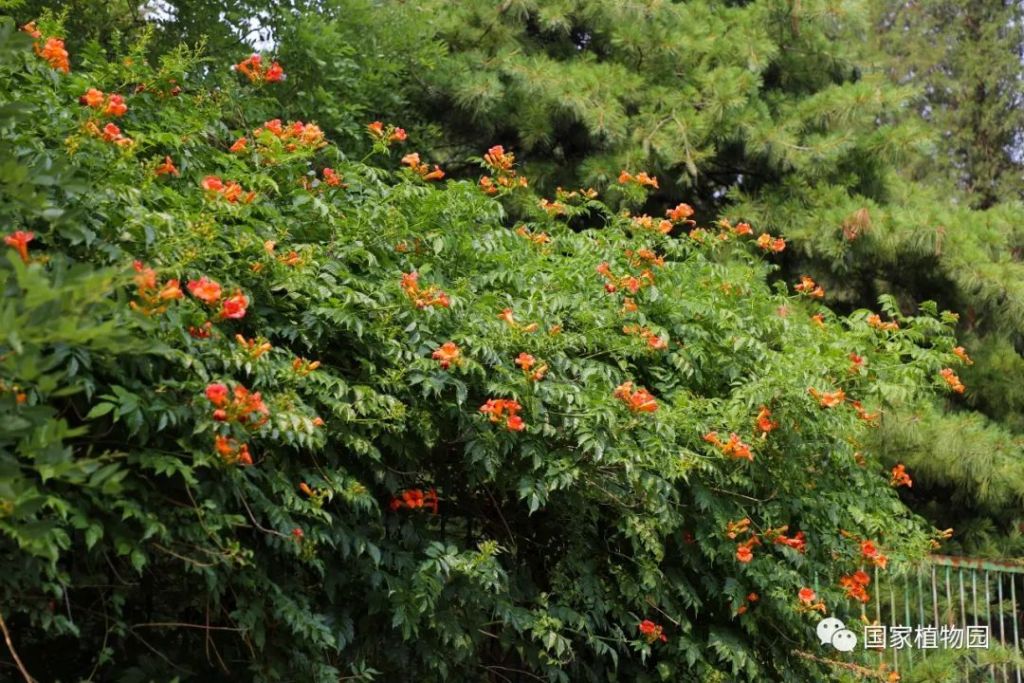 國家植物園(北園)宿根園周邊及張紹增墓西側、國家植物園(南園)本草園及水生植物區均有凌霄栽植。