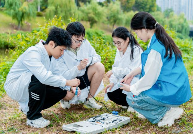 依托生態環境學院研究生第三黨支部的專業優勢,“綠色衛士”團隊還為圭塘河開展了一次“健康體檢”。志愿者們熟練操作專業儀器,對圭塘河不同點位水體的pH值、溶解氧等指標進行檢測,讓專業監測數據成為科普宣傳的“活教材”。