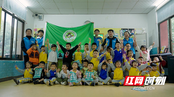 ▲中南林業科技大學志愿者在湖南新華集團印刷廠幼兒園開展科普活動。