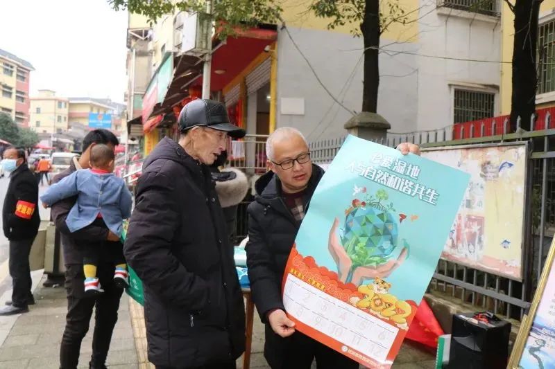濕地生態環境關乎人類的未來,請大家共同攜手,加強濕地保護,讓天更藍、水更清、地更綠、城更美……”1月25日,在桂陽縣仁義鎮的趕圩集市,省生態環境教育基地舂陵國家濕地公園管理處干部職工和志愿者們走上街頭,向鄉親們宣傳桂陽本地自然資源和生態環境保護知識,在熱鬧的趕圩日氛圍中,為大家帶來了一場豐富多彩的“世界濕地日”宣傳活動。