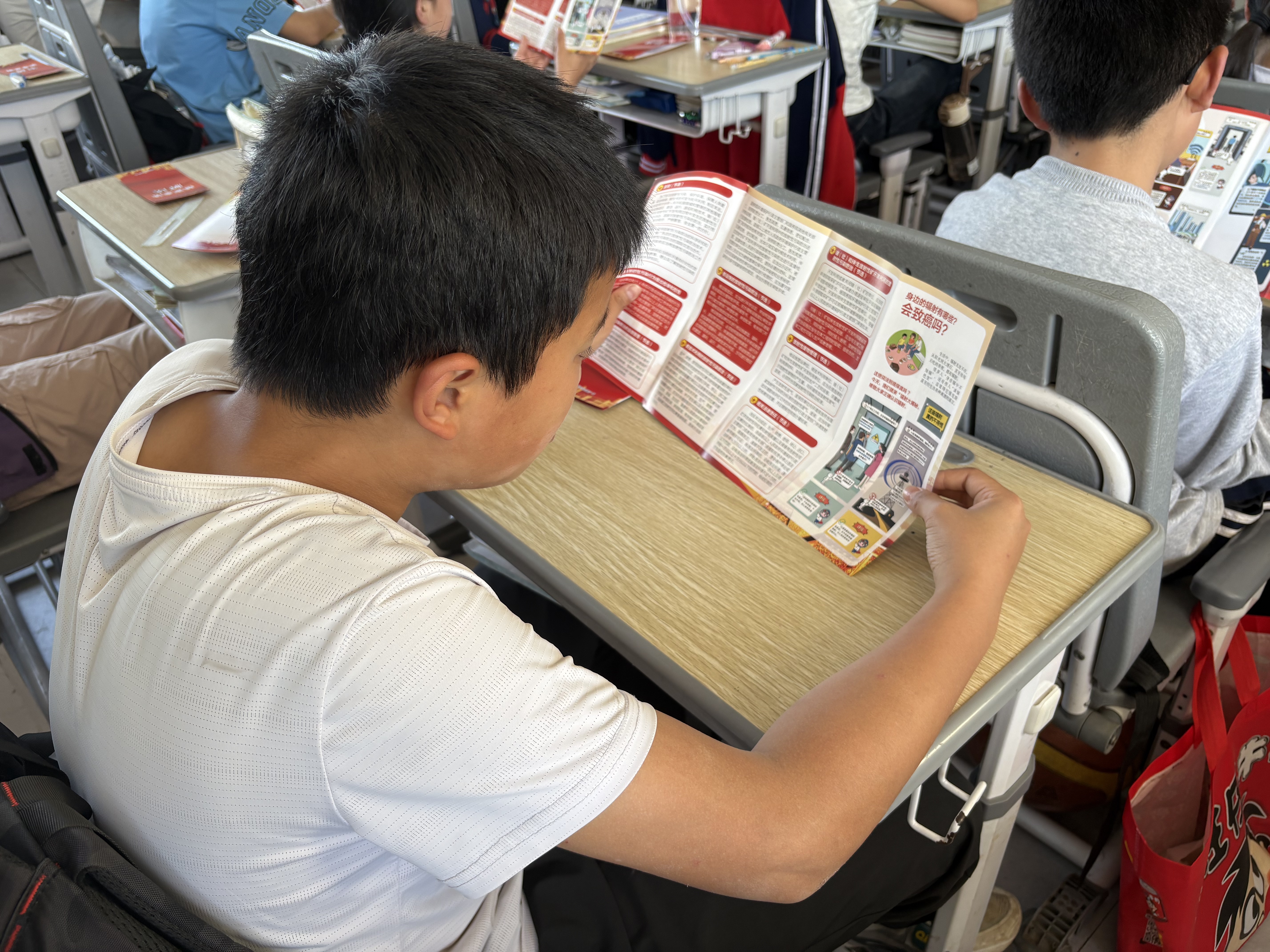 活動尾聲,生態環境志愿者向師生發放《核安全法解讀》《中華人民共和國放射性污染防治法》等宣傳折頁,鼓勵學生將所學知識帶回家,與家長共同學習。