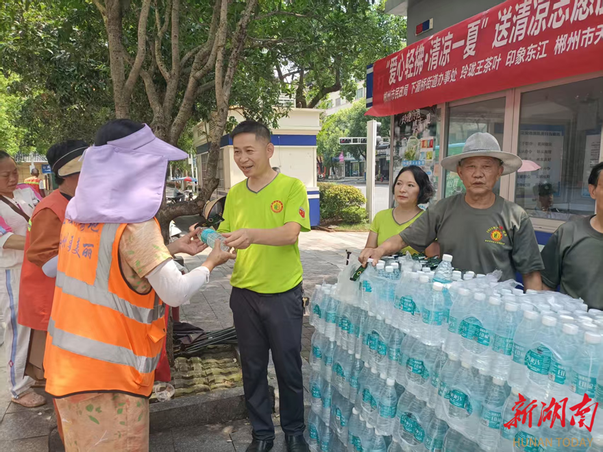 郴州市天柱公益促進會聯合愛心企業共同開展為期1個月的“愛心輕拂?清涼一夏”志愿服務活動。活動聚焦基層勞動者與新就業形態勞動者的防暑需求,通過贈送瓶裝水、茶葉、藥膏等清涼物資,將社會關懷精準送達高溫下堅守崗位的群體。