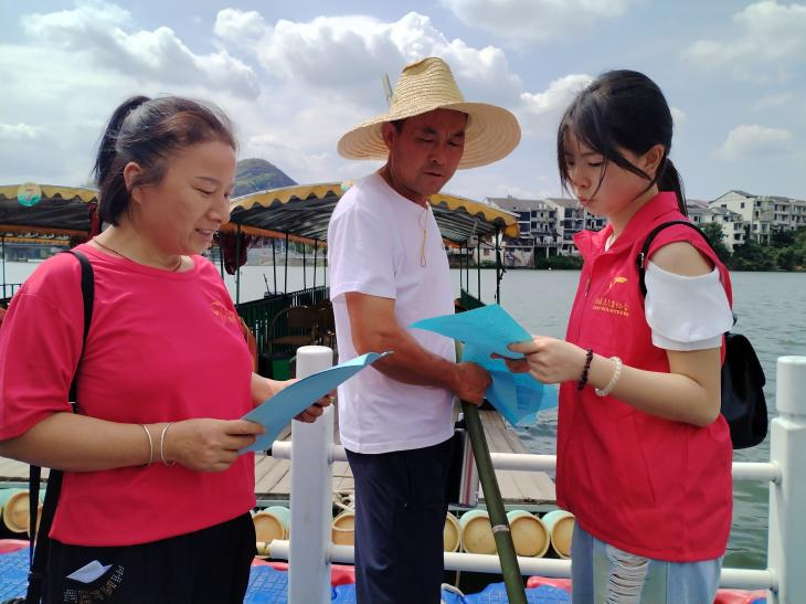 隨后,志愿者進行分組,向游客中心工作人員及游客宣傳綠色理念,普及垃圾分類、節能減排等環保知識。以全民參與生態環境建設為目標導向,將生態環保意識深植于每個人心中。