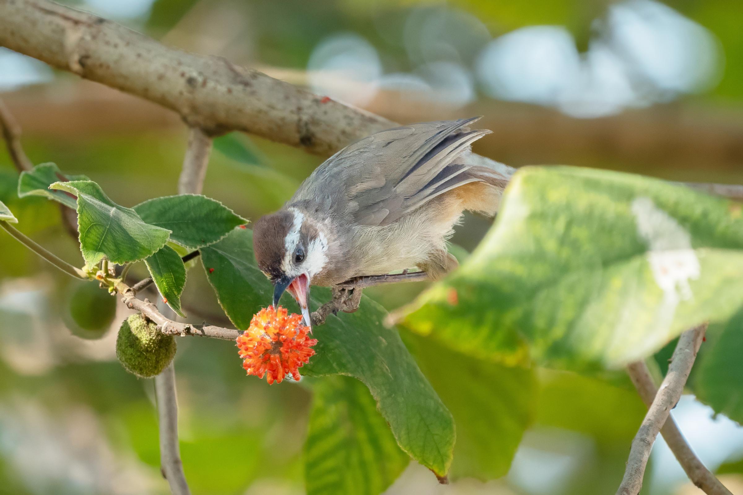 覓食的白頰噪鹛
