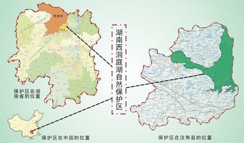湖南西洞庭湖國(guó)家級(jí)自然保護(hù)區(qū)位于洞庭湖西濱、常德市漢壽縣境內(nèi),地理坐標(biāo)為東經(jīng)111°57′22″~112°17′13″,北緯28°47′52″~29°07′21″,1998年經(jīng)湖南省人民政府批準(zhǔn)建立省級(jí)自然保護(hù)區(qū),2002年列入國(guó)際重要濕地名錄,2013年12月25日,經(jīng)國(guó)務(wù)院批準(zhǔn)晉升為國(guó)家級(jí)自然保護(hù)區(qū)。保護(hù)區(qū)總面積30044公頃,其中核心區(qū)面積9061公頃,緩沖區(qū)面積6165公頃,實(shí)驗(yàn)區(qū)面積14818公頃,濕地面積達(dá)26960公頃,屬濕地生態(tài)系統(tǒng)類型自然保護(hù)區(qū),保護(hù)區(qū)以黑鸛、白鶴等珍稀瀕危物種及西洞庭湖濕地生態(tài)系統(tǒng)為主要保護(hù)對(duì)象。