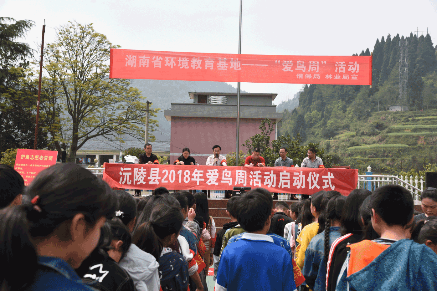 2018年4月的第一個星期是我省的第32個 “愛鳥周”,4月3日,由沅陵縣林業局和湖南借母溪國家級自然保護區管理局(以下簡稱借保局)聯合主辦的“愛鳥周”啟動儀式在筒車坪九校隆重開幕。出席本次活動的有:沅陵縣林業局副局長李玉華,主任李宗燈,野保股股長吉明,湖南借母溪鄉政府副鄉長田范英,林業站站長符武生,湖南借母溪國家級自然保護區管理局副局長李義,筒車坪九校副校長張,參加本次活動的還有借保局職工干部及護林員30余人,筒車坪九校師生200余人。